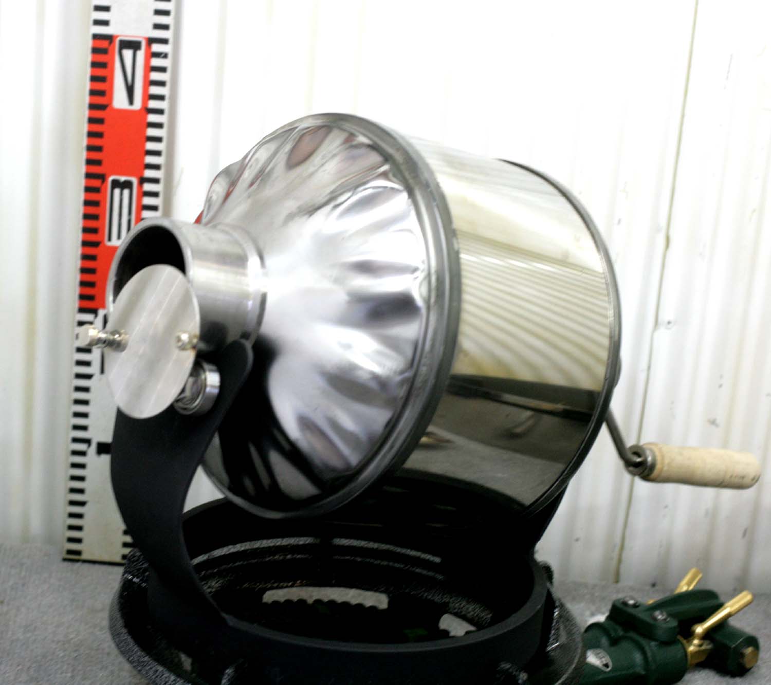 商品番号:108 1kg2重ドラム電動 温度計付き 販売価格:18万 1kg鉄製2重ドラム電動温度計付き(センサー部取り外しOK) 温度計無しの場合も可能 現在鉄ドラムですがステンレスパンチング式も有り 現在はガスコンロは前部より右端に邪魔になり為移動しています 価格は同じ(2重ドラムでは有りません) 問い合わせください デジタル温度計は別(1万)アナログ式温度計は付きます、おまけと考えてください テストスプーンはおまけ付き |